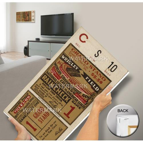 Officially licensed by MLB Mega Tickets are cutting-edge wall art. They are created from authentic game tickets enlarged 500% printed on archival canvas and professionally stretch-mounted. Perfect for autographs. Overall Size: 15(W) x28(H) x0.75(D).