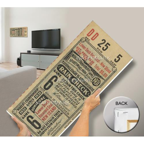 Officially licensed by MLB Mega Tickets are cutting-edge wall art. They are created from authentic game tickets enlarged 500% printed on archival canvas and professionally stretch-mounted. Perfect for autographs. Overall Size: 14(W) x30(H) x0.75(D).