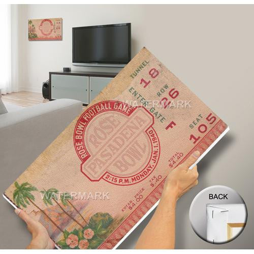 Officially licensed by CLC's College Vault Mega Tickets are cutting-edge wall art. They are created from authentic game tickets enlarged 500% printed on archival canvas and professionally stretch-mounted. Perfect for autographs. Overall Size: 16(W) x28(H) x0.75(D).