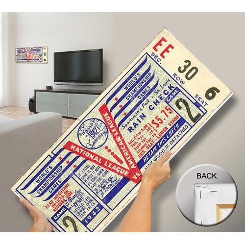 Officially licensed by MLB Mega Tickets are cutting-edge wall art. They are created from authentic game tickets enlarged 500% printed on archival canvas and professionally stretch-mounted. Perfect for autographs. Overall Size: 14(W) x32(H) x0.75(D).