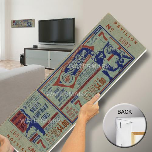Officially licensed by MLB Mega Tickets are cutting-edge wall art. They are created from authentic game tickets enlarged 500% printed on archival canvas and professionally stretch-mounted. Perfect for autographs. Overall Size: 10(W) x33(H) x0.75(D).