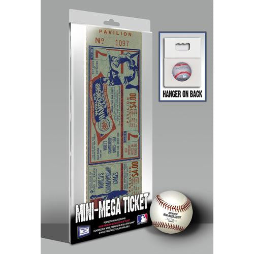 The 1964 St. Louis Cardinals are often credited with ending the New York Yankee dynasty. Led by Lou Brock Ken Boyer Bob Gibson and Tim McCarver the Cardinals defeated the Yankees in seven games. Gibson who was named World Series MVP hurled complete-game victories in Games 5 & 7. This Game 7 Mini-Mega Ticket commemorates the title. Overall Size: 4 (W) x 13 (H) x 1/4 (D) Officially licensed by MLB Mini-Mega Tickets are made from authentic MLB tickets. Mini-Mega Tickets are approximately 200% larger than their original ticket size and printed directly on 1/4-inch thick rigid PVC board. They are perfect for autographs. Mini-Mega Tickets make great wall art as they include a flexible wall hanger on their back. *Product shown in packaging