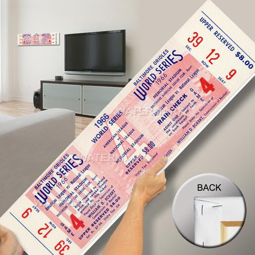 Officially licensed by MLB Mega Tickets are cutting-edge wall art. They are created from authentic game tickets enlarged 500% printed on archival canvas and professionally stretch-mounted. Perfect for autographs. Overall Size: 9(W) x36(H) x0.75(D).