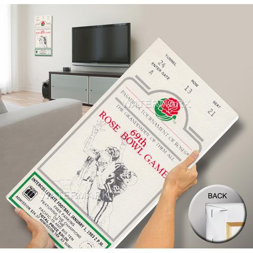 Officially licensed by CLC's College Vault Mega Tickets are cutting-edge wall art. They are created from authentic game tickets enlarged 500% printed on archival canvas and professionally stretch-mounted. Perfect for autographs. Overall Size: 15(W) x30(H) x0.75(D).