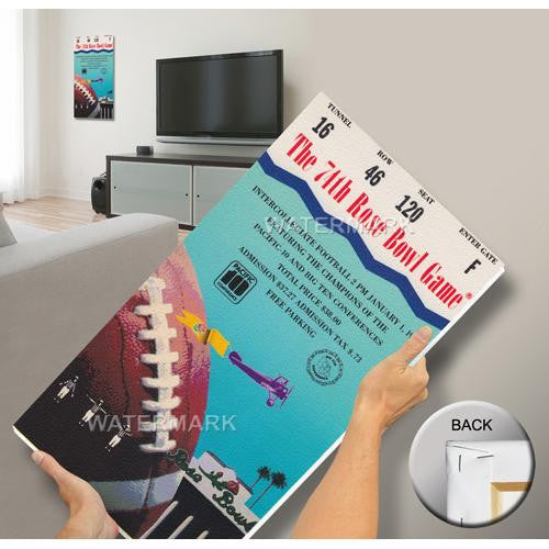 Officially licensed by CLC's College Vault Mega Tickets are cutting-edge wall art. They are created from authentic game tickets enlarged 500% printed on archival canvas and professionally stretch-mounted. Perfect for autographs. Overall Size: 16(W) x31(H) x0.75(D).