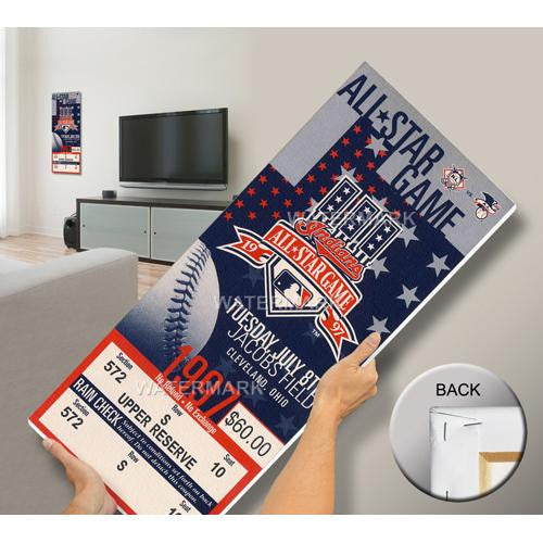 Officially licensed by MLB Mega Tickets are cutting-edge wall art. They are created from authentic game tickets enlarged 500% printed on archival canvas and professionally stretch-mounted. Perfect for autographs. Overall Size: 13(W) x32(H) x0.75(D).