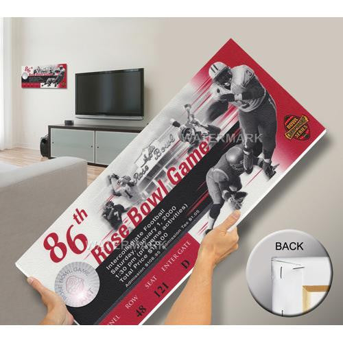 Officially licensed by CLC's College Vault Mega Tickets are cutting-edge wall art. They are created from authentic game tickets enlarged 500% printed on archival canvas and professionally stretch-mounted. Perfect for autographs. Overall Size: 14(W) x32(H) x0.75(D).