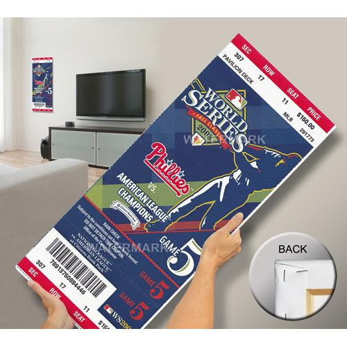 Officially licensed by MLB Mega Tickets are cutting-edge wall art. They are created from authentic game tickets enlarged 500% printed on archival canvas and professionally stretch-mounted. Perfect for autographs. Overall Size: 14(W) x33(H) x0.75(D).