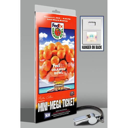 The 2010 FedEx Orange Bowl featured the Georgia Tech Yellow Jackets and the Iowa Hawkeyes at Land Shark Stadium in Miami Gardens Florida on Tuesday January 5. Iowa's defense proved too much for the Yellow Jackets as the Hawkeyes claimed their first BCS bowl victory with the 24-14 win. This Mini-Mega Ticket commemorates the event. Overall Size: 6 (W) x 12 7/8 (H) x 1/4 (D) Officially licensed by the Collegiate Licensing Company Mini-Mega Tickets are made from authentic NCAA tickets. Mini-Mega Tickets are approximately 200% larger than their original ticket size and printed directly on 1/4-inch thick rigid PVC board. They are perfect for autographs and can be used as a team-signed item. Mini-Mega Tickets make great wall art as they include a flexible wall hanger on their back. *Product shown in packaging