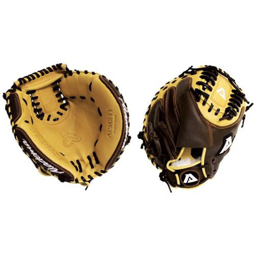 33in circumference Spiral-Lock web open back deep Akadema Pro Thunderpocket designed for the professional catcher. With new patent pending Stress Wedge technology located between the index finger and thumb the Praying Mantis offers shock absorbing protection for the hand against injury and sting when receiving the ball. The Praying Mantis also offers two additional Finger Hammocks allowing the fingers to be firmly positioned and more secure in the glove. Additional features include the Double-sided Slim Padding allowing for increased pocket size and easier ball retention. Uniquely designed shape allows the throwing hand easier access into the pocket resulting in a quicker glove to hand transfer and faster times to second base. The Praying Mantis also features a Double Flexhinge which makes the glove snap closed on contact.