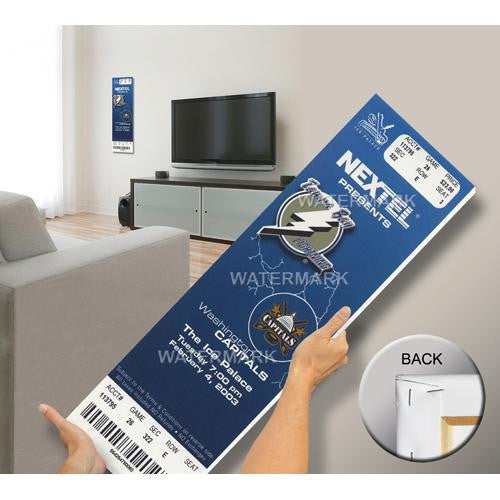Officially licensed by the NHL Mega Tickets are cutting-edge wall art. They are created from authentic game tickets enlarged 500% printed on archival canvas and professionally stretch-mounted. Perfect for autographs. NHL and the NHL Shield are registered trademarks of the National Hockey League. All NHL logos and marks and NHL team logos and marks depicted herein are the property of the NHL and the respective teams and may not be reproduced without the prior written consent of NHL EnterprisesL.P. e NHL 2011.All Rights Reserved. Overall Size: 11(W) x33(H) x0.75(D).