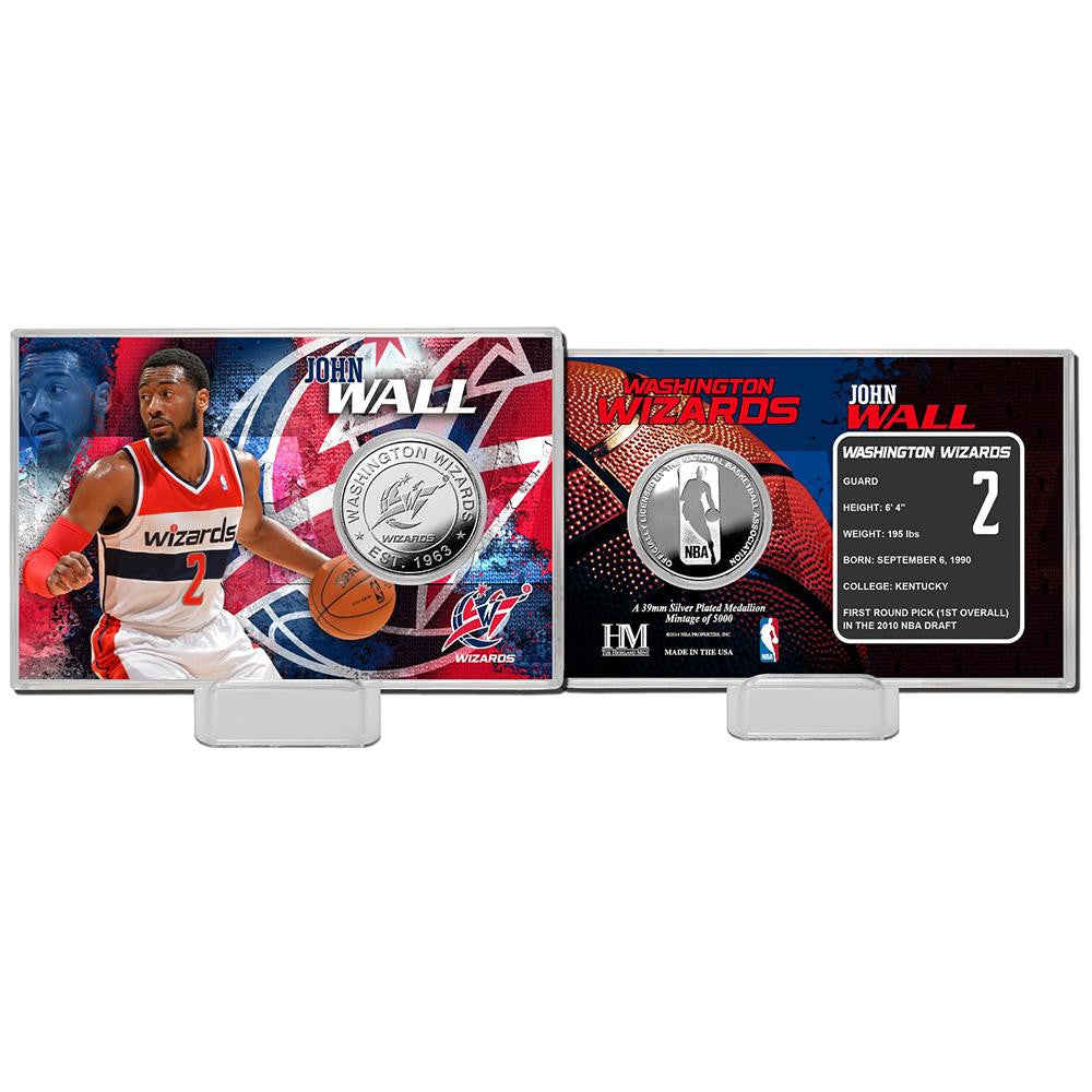 A 39mm minted silver plate coin is featured in a 4in x 6in acrylic display with printed color graphics of your favorite NBA player and delivered with a display stand! Limited editon of 5000 and officially licensed by NBA. Proudly made in the USA by The Highland Mint.