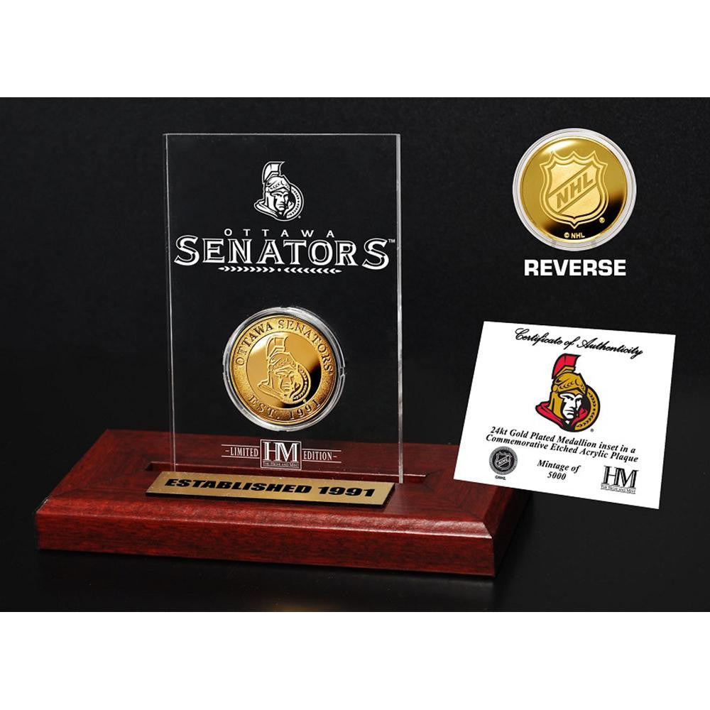 Limited Edition ofe5000!e The 24KT Goldeflashed Team CommemorativeeCoin is featured in a 3.5in x 5in acrylic engraved with theeNHL Shield Logo on the reverse of the coin. The individually numbered 39mm Minted Goldeflashed Coin and engraved acrylic is delivered with a wood base that includes an engraved nameplate as well each is accompanied by a Certificate of Authenticity. Officially Licensed by the NHL.