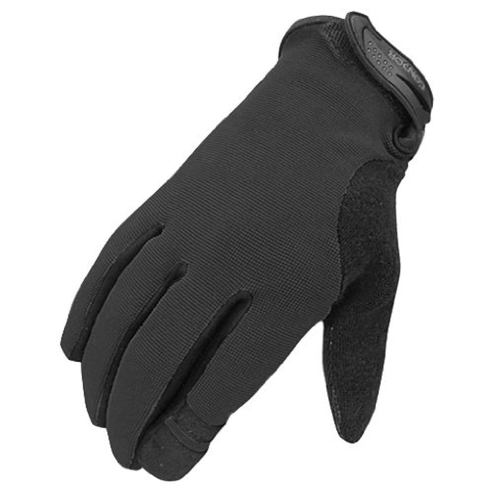Synthetic leather palm with reinforcement and padding. e2-way stretch spandex backhand for flexibility and breathability. Hook & loop cuff closure with molded rubber tab. eSilicone anti-slip treatment finger tips to maximize grip.eSilicone anti-slip treatment finger tips to maximize grip. Terry cloth sweat wipe on thumb.