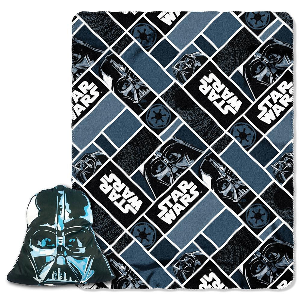 We all know that children love to have their favorite Blanket and matching pillow close at hand and this Star Wars big Mask Darth Vader pillow and fleece throw set by the Northwest company is the perfect combination for just that. Take a Nap in the den with this set watch your favorite Disney show while cuddling with it or take it along on sleepovers and long Road trips. The 100% polyester fleece throw which can be held in the back pocket of the pillow is machine washable and the big face pillow is spot clean only.