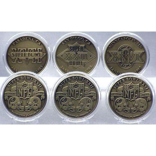 As the company commissioned by the NFL to make the Super Bowl flip coin for the past 10 years the Highland Mint has been granted the approval to go back in time and commemorate past Super Bowls. This unique match numbered souvenir coin collection commemorates the Washington Redskins Championship teams of Super Bowl XVII XXII and XVI. Each coin has a similar design of the current flip coins that includes dueling helmets ribbons with team names and Super Bowl Commemoration on the front and the reverse of the coin features the Super Bowl Logo for that year as well as the date that the game was played. Super Bowl XVI: This coin features the NFL Shield as a replacement of the Lombardi Trophy and includes the score of the game on the front of the coin. Washington 27 Miami 17 Super Bowl XXII: This Coin features the NFL Shield as a replacement of the Lombardi Trophy and includes the score of the game on the front of the coin. Washington 42 Denver 10 Super Bowl