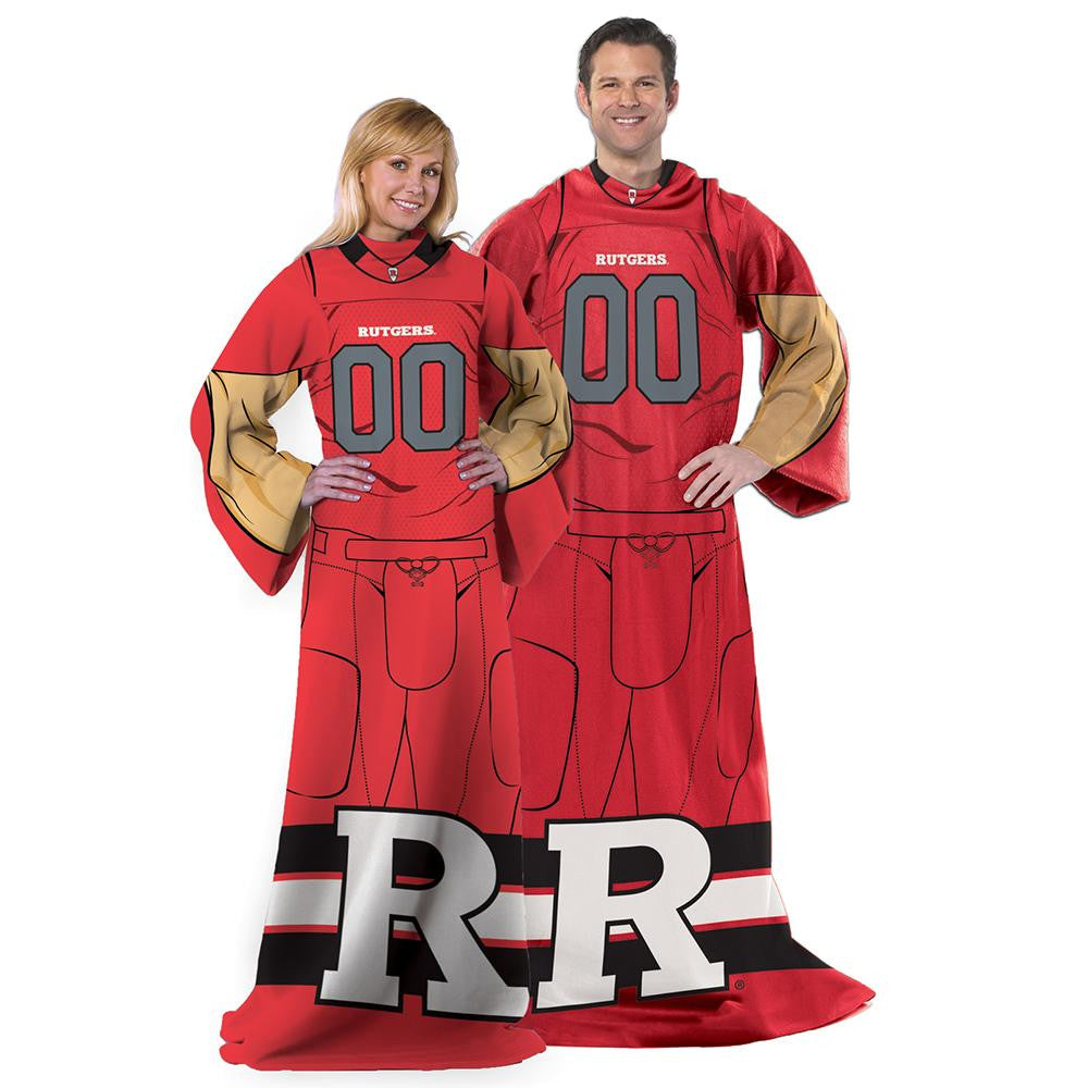 Rutgers Scarlet Knights NCAA Adult Uniform Comfy Throw Blanket w- Sleeves